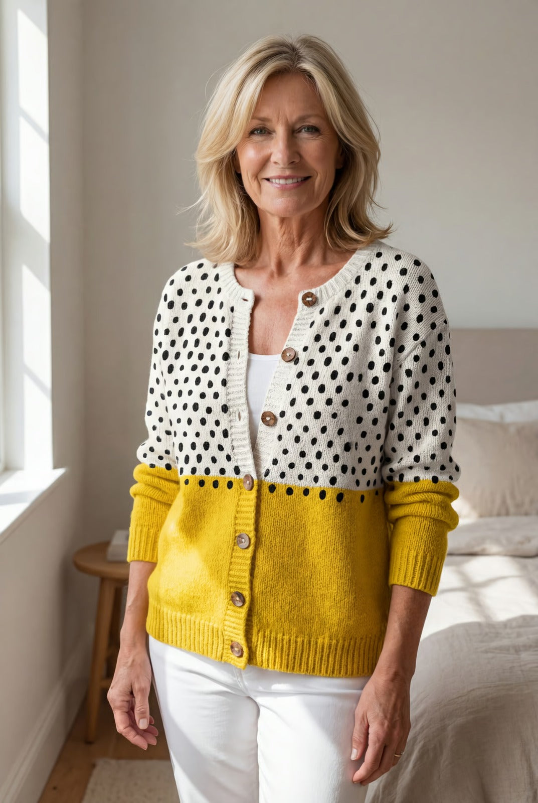 Crafted from a soft, insulating knit that feels cozy yet breathable, this cardigan is perfect for layering through the heart of winter. Whether you’re heading out on a chilly morning, enjoying a quiet coffee indoors, or adding an elegant finishing layer at the office, it’s the timeless essential you’ll reach for all season long.